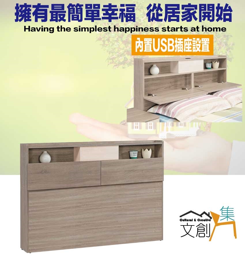 - ◆產品名稱:【綠家居】高利5尺雙人插座床頭箱(不含床底+不含床墊)