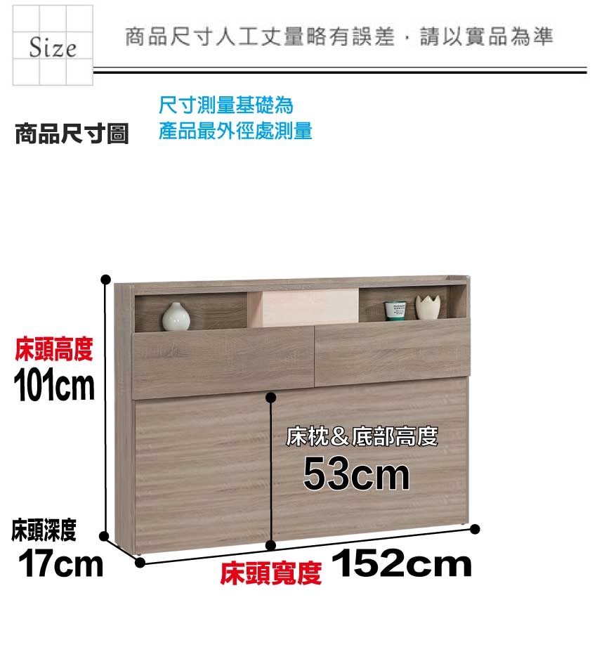 床頭尺寸:(寬)152x(深)17x(高)101/公分