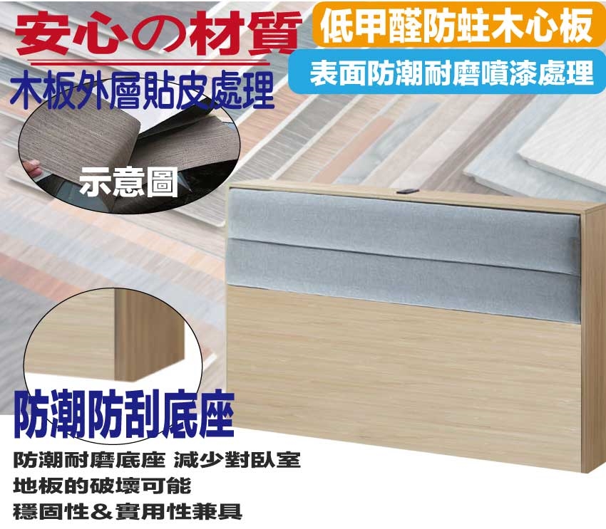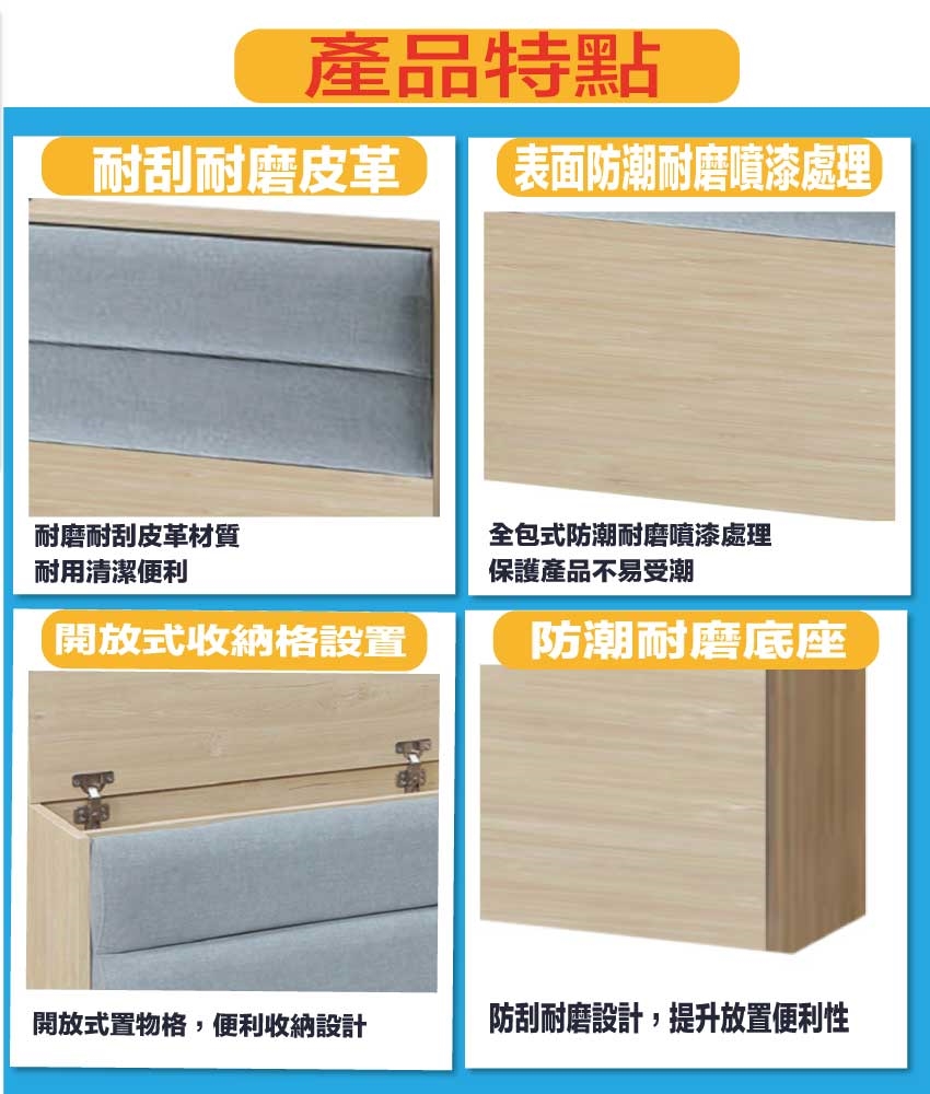 材質:防蛀木心板+防潮耐磨底座+耐磨耐刮皮革+高回彈泡棉