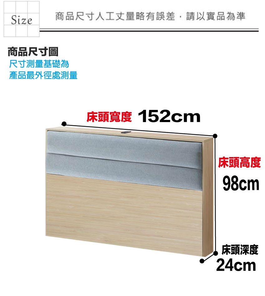 床頭尺寸:(寬)152x(深)24x(高)98/公分