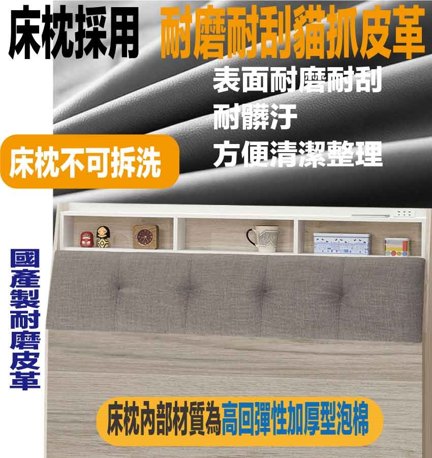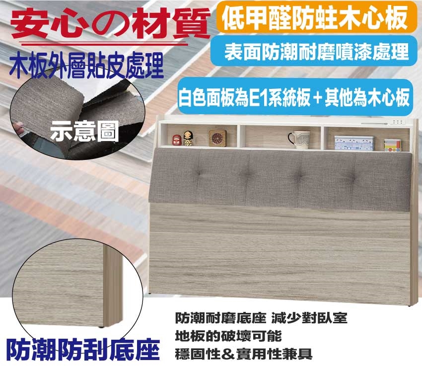 材質:防蛀木心板+E1系統板材+防潮耐磨底座+耐磨耐刮皮革+高回彈泡棉