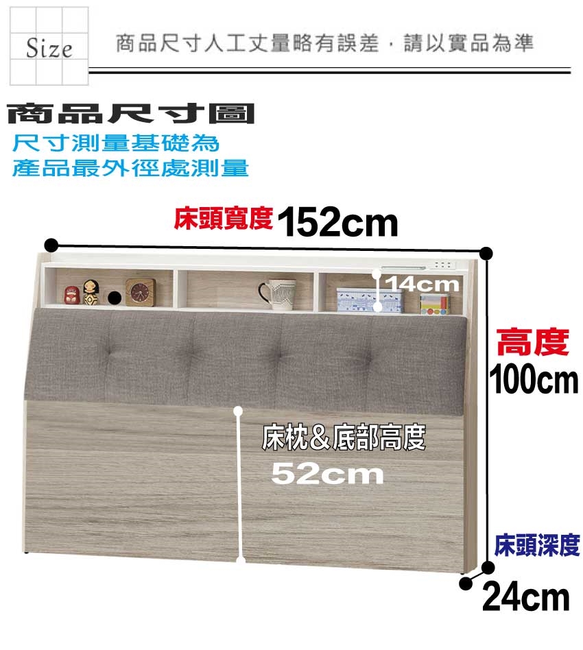 - 床頭尺寸:(寬)152x(深)24x(高)100/公分