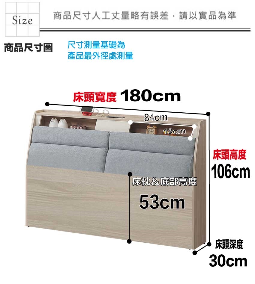- 床頭尺寸:(寬)150x(深)30x(高)106/公分
