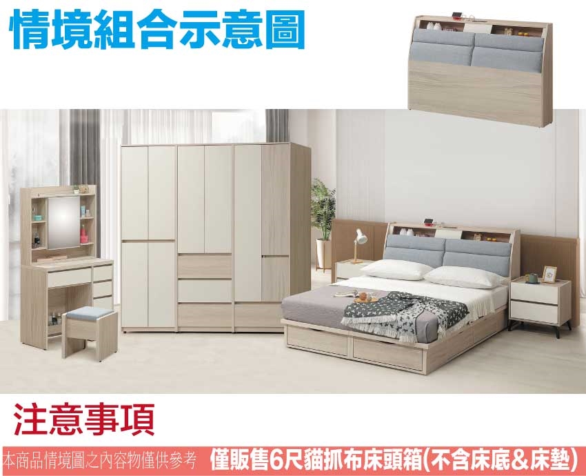 【綠家居】艾悠6尺雙人加大貓抓布床頭箱(不含床底+不含床墊)