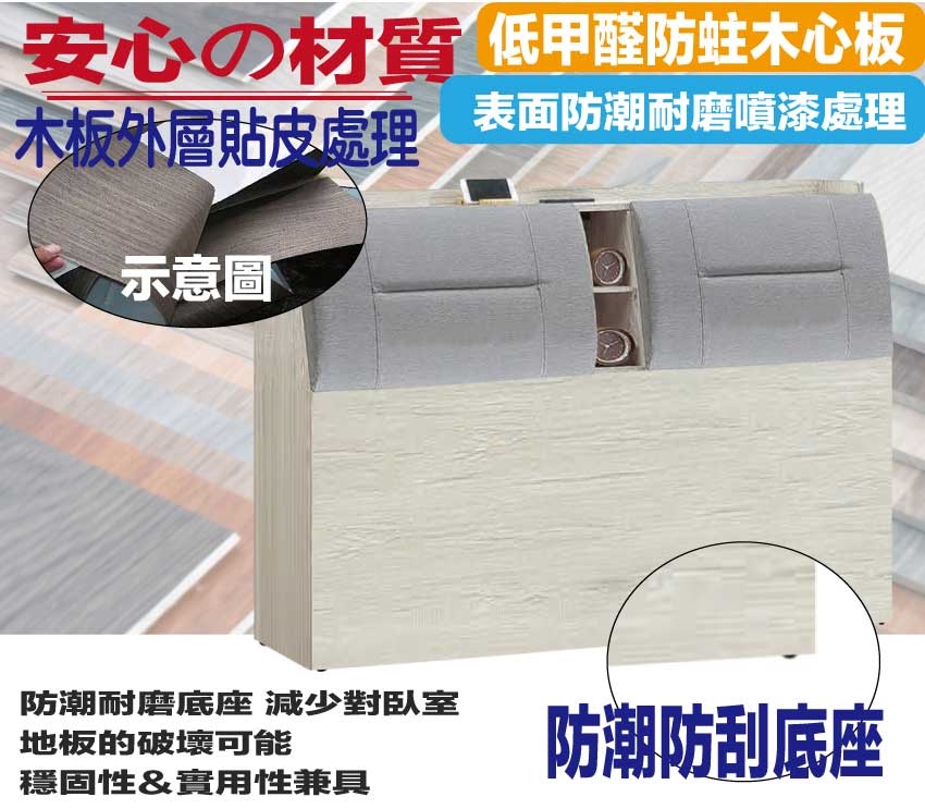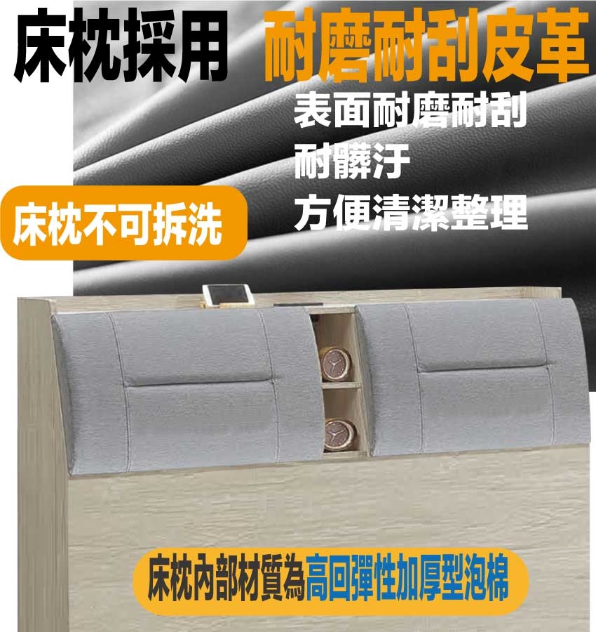 材質:防蛀木心板+防潮耐磨底座+耐磨耐刮皮革+高回彈泡棉
