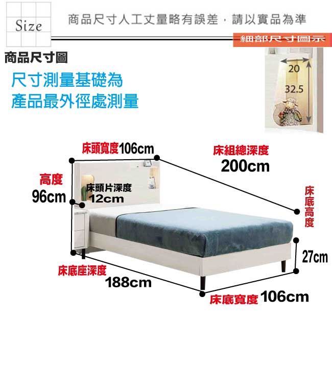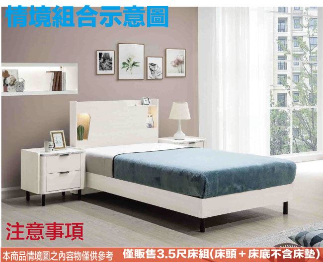 【綠家居】菲可達3.5尺單人夜燈床台組合(床頭片+床底+不含床墊)