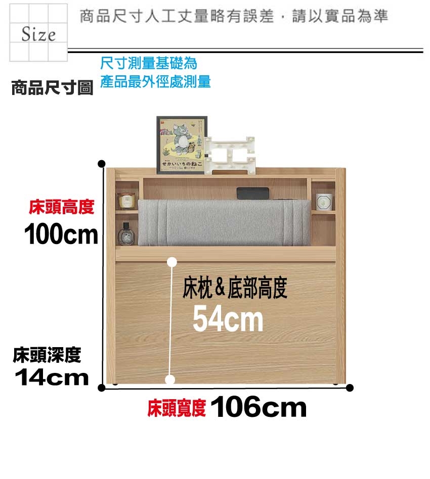 床頭尺寸:(寬)106x(深)14x(高)100/公分