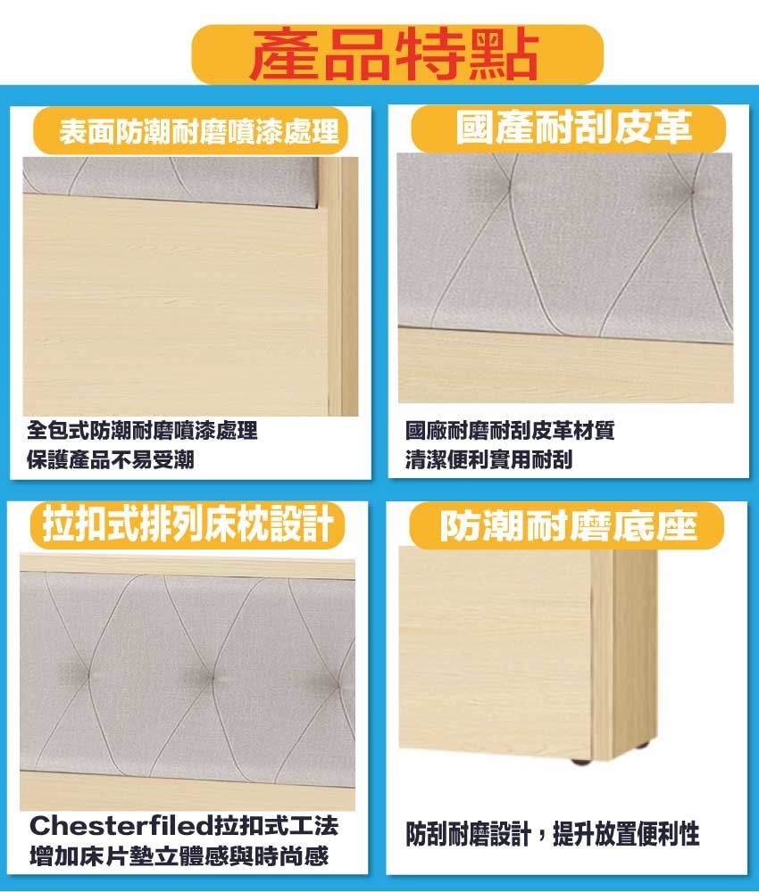 材質:防蛀木心板+防潮耐磨底座+耐磨耐刮皮革+高彈力泡棉