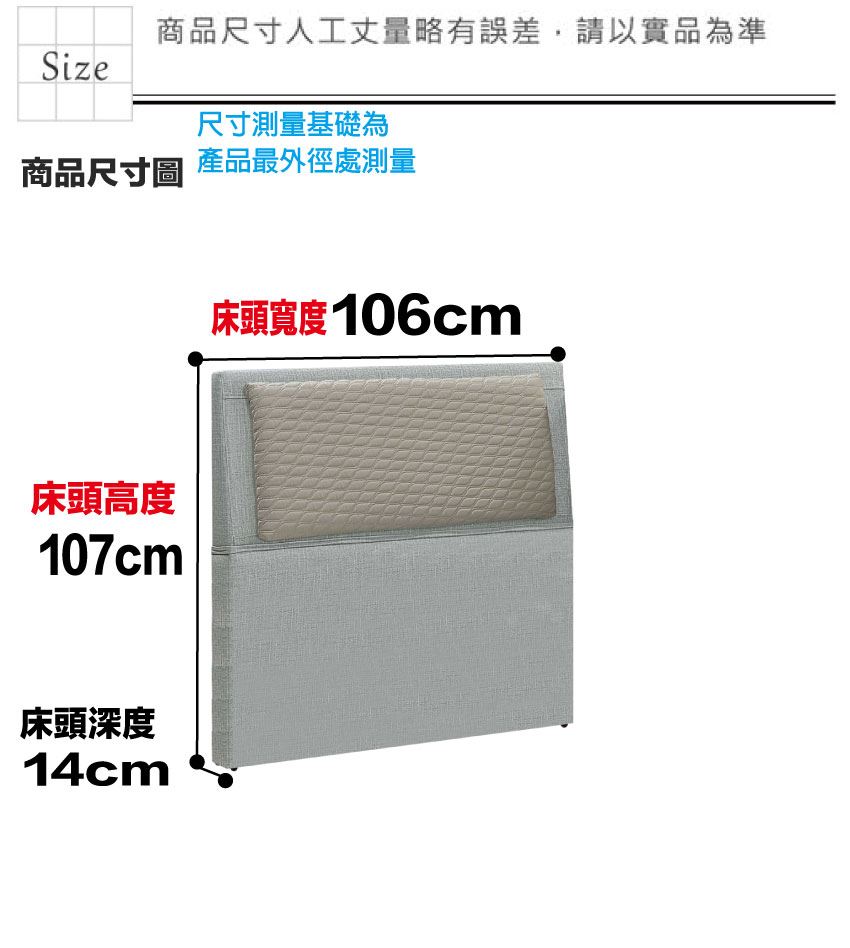床頭尺寸:(寬)106x(深)14x(高)107/公分