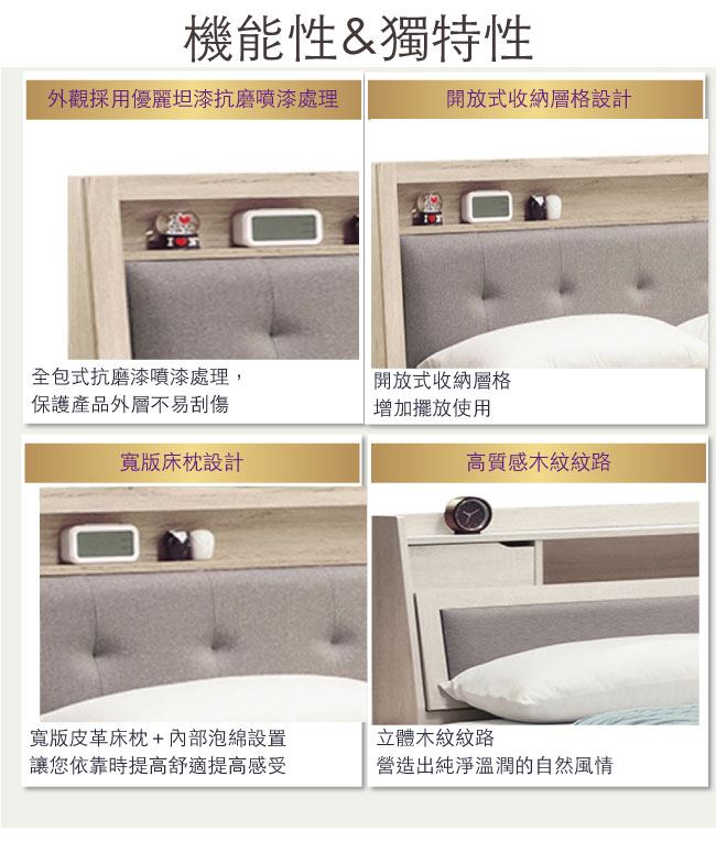 商品介紹 | 【綠家居】莉歐 現代5尺雙人貓抓皮革床頭片(不含床底+不含床墊) 橡木紋色系+現代簡約風格+安心材質製造,整體採用防蛀木心板+耐刮貓抓皮革+高密度泡棉等安心材質製造,外層採用優利坦全包式耐磨噴漆處理搭配採用開放式收納層格便利設計,全由專人配送到家,專業安心服務,替你省下更多時間! 【商品特色】 橡木紋色系+現代簡約風格+安心材質製造,使用放心+搭配居家更便利 採用防蛀木心板+耐刮貓抓皮革+高密度泡棉等安心材質製造 採用開放式收納層格便利設計 此商品不需要DIY組立,此商品為組立後之成品 品質保證、專業設計、貼心服務 全由專人配送到家,專業安心服務,替您省下更多時間 |