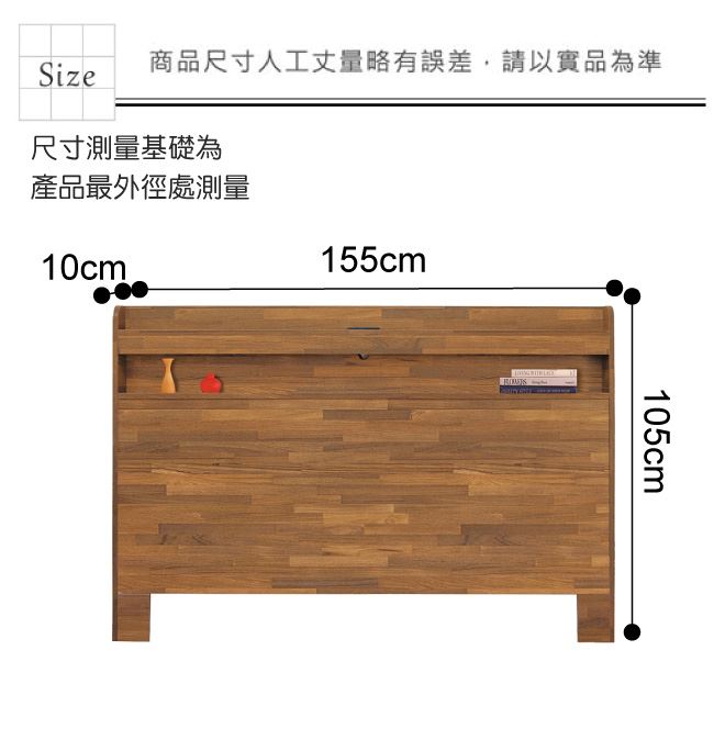 材質 | ◆產品名稱:【綠家居】斯里蘭 現代5尺雙人床頭片(二色可選) 產品尺寸: 床頭尺寸:(寬)155x(深)10x(高)105/公分 ◆材質: 材質:防蛀木心板 塗漆:優利坦全包式耐磨噴漆處理 |