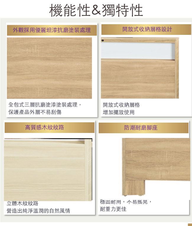 商品介紹 | 【綠家居】里巴斯 現代5尺雙人可收納床頭片(三色可選+不含床底+不含床墊) 三色可選+現代簡約風格+安心材質製造,床頭整體採用防蛀木心板安心材質製造,外層採用優利坦三層全包式耐磨塗漆塗裝處理搭配開放式收納層格便利收納設計+USB插座設置,全由專人配送到家,專業安心服務,替你省下更多時間! 【商品特色】 三色可選+現代簡約風格+安心材質製造,使用放心+搭配居家更便利 採用防蛀木心板安心材質製造 開放式收納層格便利收納設計+USB插座設置 此商品不需要DIY組立,此商品為組立後之成品 品質保證、專業設計、貼心服務 全由專人配送到家,專業安心服務,替您省下更多時間 |