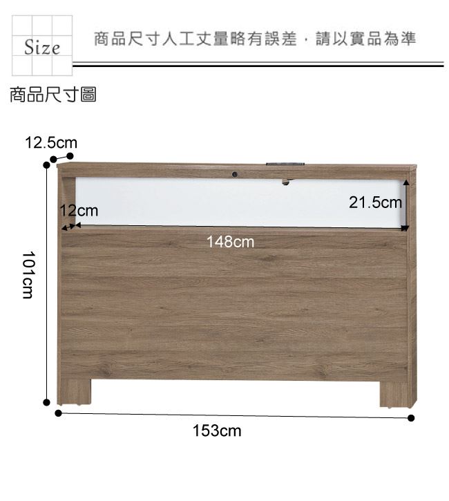 材質 | ◆產品名稱:【綠家居】里巴斯 現代5尺雙人可收納床頭片(三色可選+不含床底+不含床墊) 產品尺寸: 床頭尺寸:(寬)153x(深)12.5x(高)101/公分 ◆材質: 材質:防蛀木心板 塗漆:優利坦三層全包式耐磨塗漆塗裝處理 |