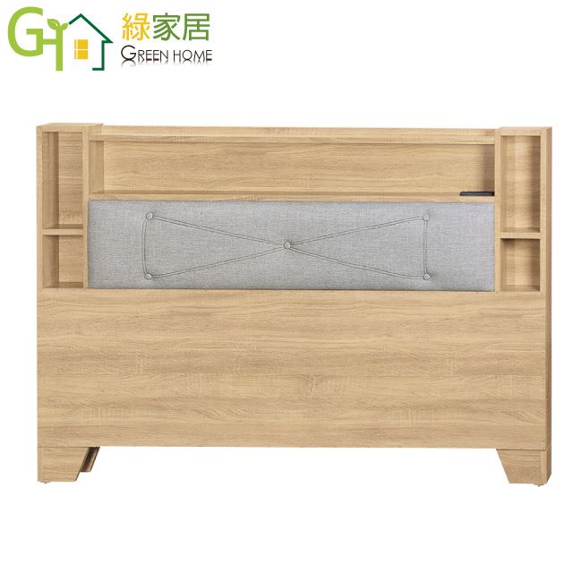 【綠家居】德普 現代5尺皮革雙人可收納床頭片(七色可選+USB插座)