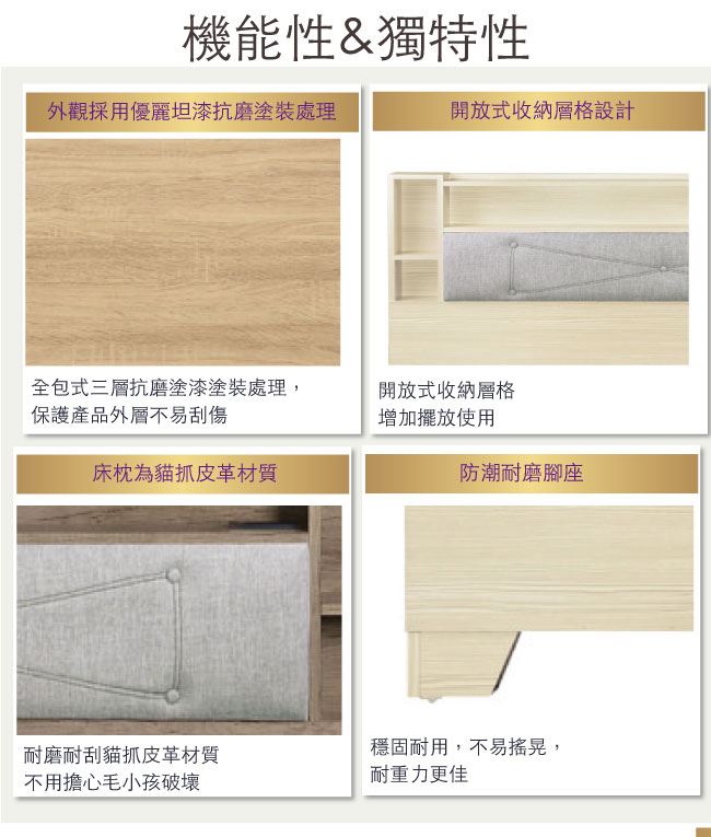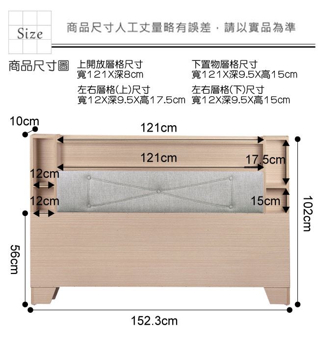 材質 | ◆產品名稱:【綠家居】德普 現代5尺皮革雙人可收納床頭片(七色可選+USB插座) 產品尺寸: 床頭尺寸:(寬)152.3x(深)10x(高)102/公分 ◆材質: 材質:防蛀木心板 材質:透氣PU皮革+高密度泡棉 塗漆:優利坦三層全包式耐磨塗漆塗裝處理 |