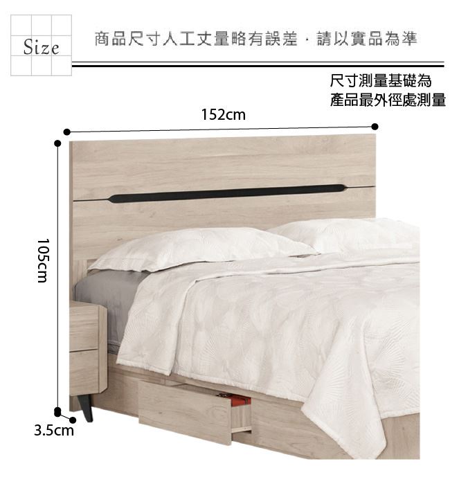 材質 | ◆產品名稱: 【綠家居】查迪 橡木紋5尺雙人床頭片(不含床底+不含床墊) 床頭片尺寸:(寬)152x(深)3.5(高)105/公分 ◆材質: 材質:防蛀木心板 噴漆:防潮耐磨噴漆處理