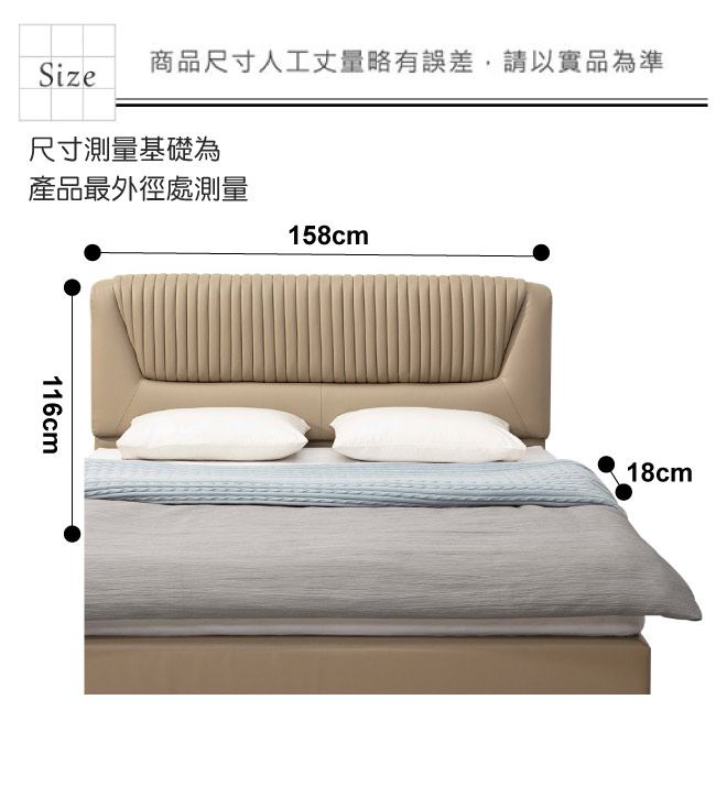 材質 | ◆產品名稱: 【綠家居】愛伯利 現代5尺雙人透氣皮革床頭片(不含床底+不含床墊) 產品尺寸: 床頭尺寸:(寬)158(深)18x(高)116公分 ◆材質: 材質:實木骨架+防蛀木心板+柔韌透氣皮革+高密度泡棉