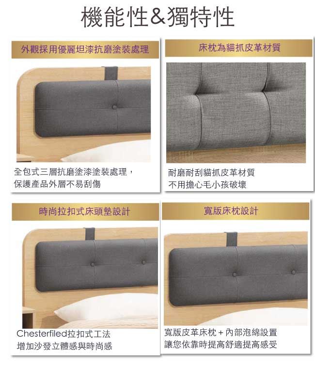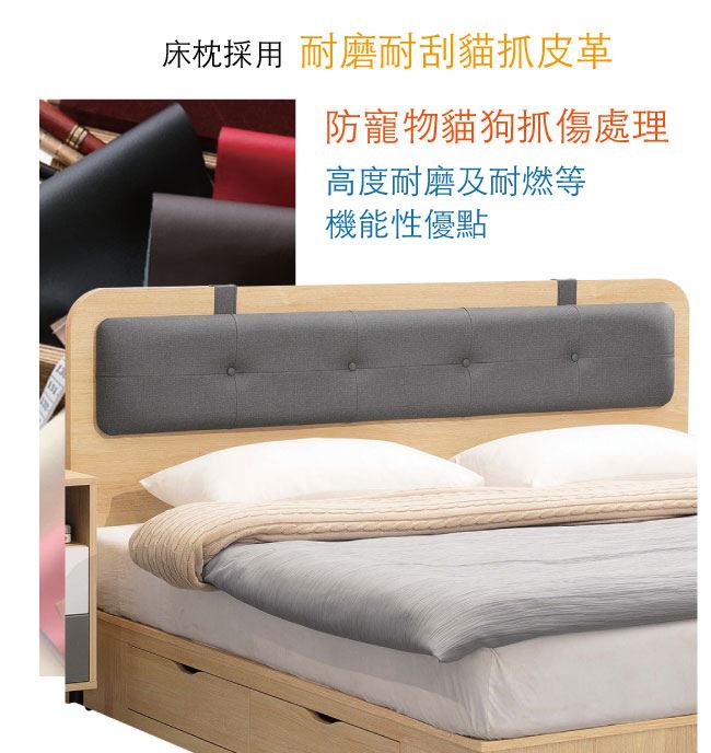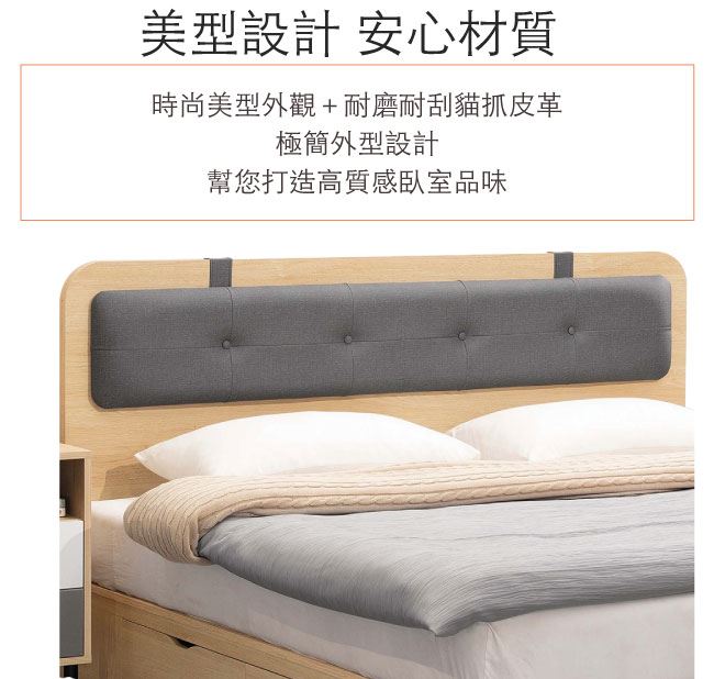 商品 介紹 | 【綠家居】貝麥 現代5尺雙人貓抓皮革床頭片(不含床底+不含床墊) 原木紋色系+現代簡約風格+安心材質製造,整體採用防蛀木心板+耐刮貓抓皮革+高密度泡棉等安心材質製造,外層採用優利坦全包式耐磨噴漆處理,全由專人配送到家,專業安心服務,替你省下更多時間! 【商品特色】 原木紋色系+現代簡約風格+安心材質製造,使用放心+搭配居家更便利 採用防蛀木心板+耐刮貓抓皮革+高密度泡棉等安心材質製造 此商品不需要DIY組立,此商品為組立後之成品 品質保證、專業設計、貼心服務 全由專人配送到家,專業安心服務,替您省下更多時間 |