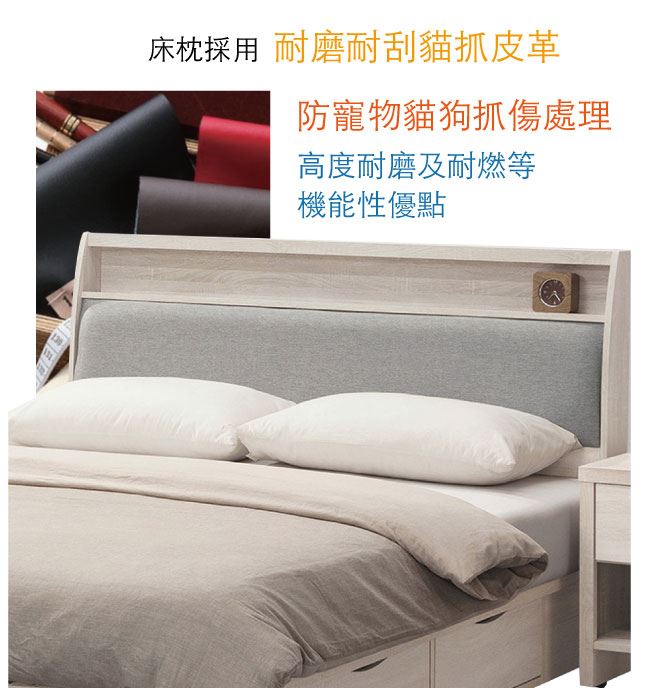 商 品 介 紹 | 【綠家居】提米 現代5尺雙人貓抓皮革床頭片(不含床底+不含床墊) 淺橡木紋色系+現代簡約風格+安心材質製造,整體採用防蛀木心板+耐刮貓抓皮革+高密度泡棉等安心材質製造,外層採用優利坦全包式耐磨噴漆處理搭配採用開放式收納層格便利設計,全由專人配送到家,專業安心服務,替你省下更多時間! 【商品特色】 淺橡木紋色系+現代簡約風格+安心材質製造,使用放心+搭配居家更便利 採用防蛀木心板+耐刮貓抓皮革+高密度泡棉等安心材質製造 採用開放式收納層格便利設計 此商品不需要DIY組立,此商品為組立後之成品 品質保證、專業設計、貼心服務 全由專人配送到家,專業安心服務,替您省下更多時間 |