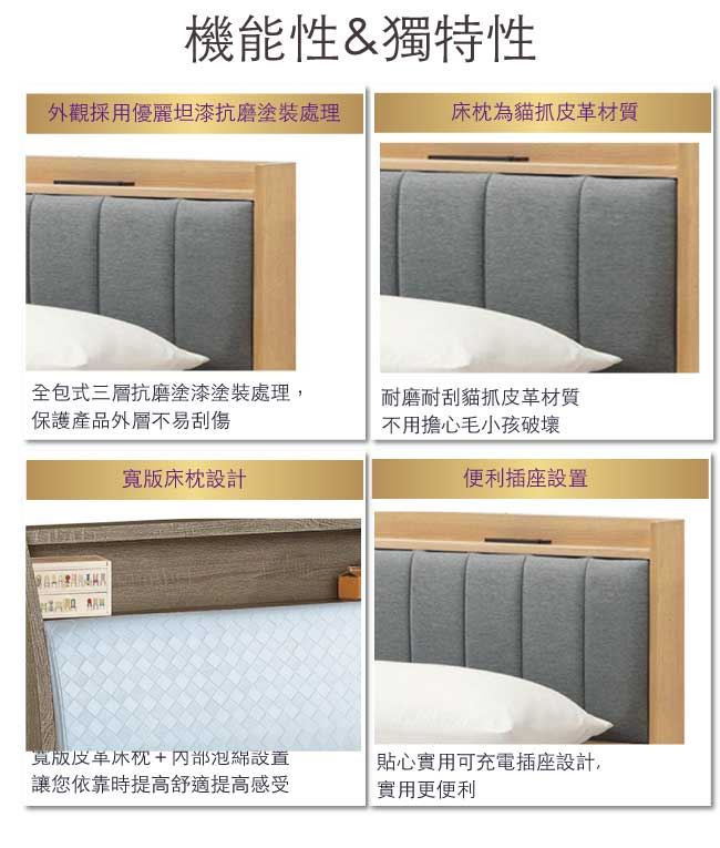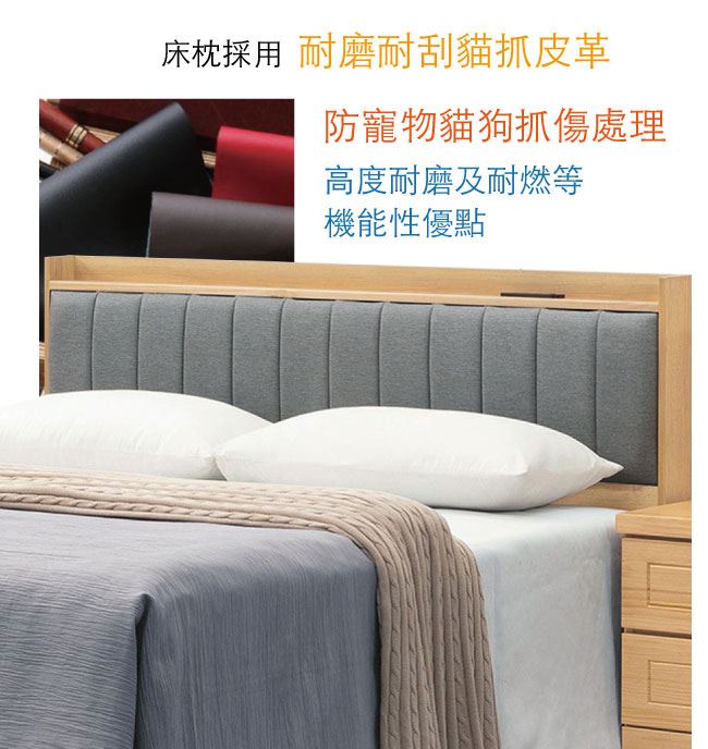 商 品 介 紹 | 【綠家居】哥倫 現代5尺雙人貓抓皮革床頭片(不含床底+不含床墊) 原木紋色系+現代簡約風格+安心材質製造,整體採用防蛀木心板+耐刮貓抓皮革+高密度泡棉等安心材質製造,外層採用優利坦全包式耐磨噴漆處理搭配採用開放式收納層格+便利插座設置等便利設計,全由專人配送到家,專業安心服務,替你省下更多時間! 【商品特色】 原木紋色系+現代簡約風格+安心材質製造,使用放心+搭配居家更便利 採用防蛀木心板+耐刮貓抓皮革+高密度泡棉等安心材質製造 採用開放式收納層格+便利插座設置等便利設計 此商品不需要DIY組立,此商品為組立後之成品 品質保證、專業設計、貼心服務 全由專人配送到家,專業安心服務,替您省下更多時間 |