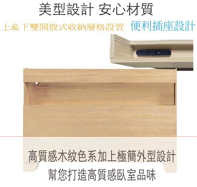 【綠家居】欣安5尺雙人可收納附插座床頭片(七色可選)