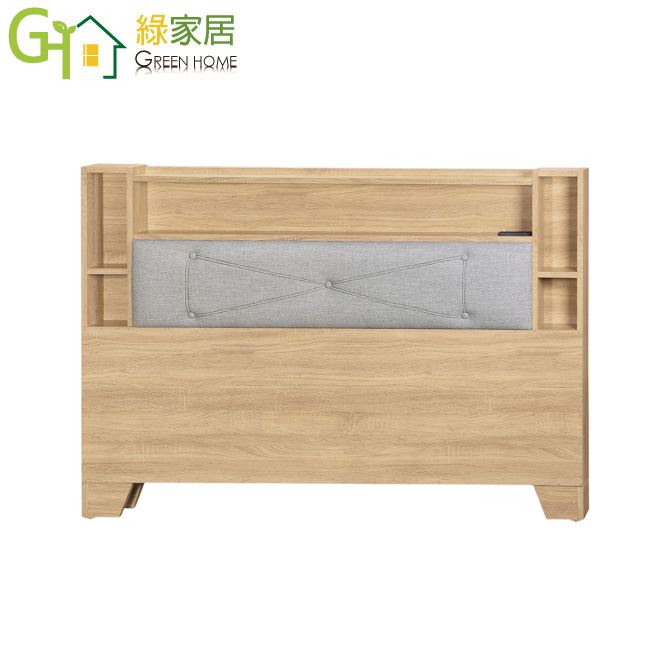 【綠家居】欣安5尺雙人貓抓皮革可收納附插座床頭片(七色可選)