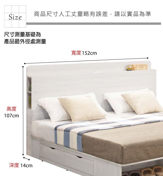 材質 | ◆產品名稱:【綠家居】剛果5尺雙人可收納床頭片(不含床底+不含床墊) 床頭尺寸:(寬)152x(深)14(高)107/公分 ◆材質: 材質:防蛀木心板+防刮耐磨底座 噴漆:防潮耐磨噴漆處理