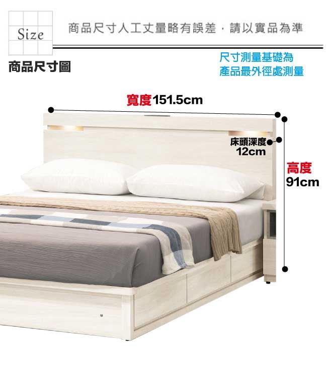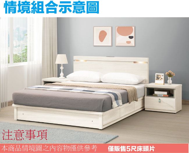 材質 | ◆產品名稱:【綠家居】艾絲莉5尺夜燈雙人床頭片(不含床底+不含床墊) 床頭尺寸:(寬)151.5x(深)12(高)91/公分 ◆材質: 材質:防蛀木心板 噴漆:防潮耐磨噴漆處理