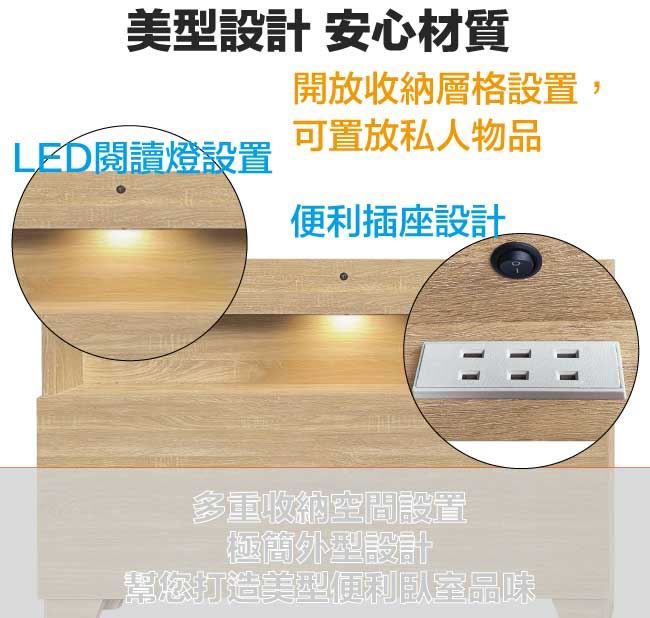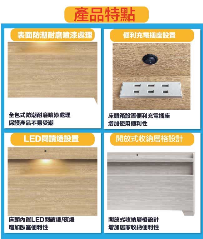 【綠家居】南極5尺雙人可收納床頭片(六色可選+含插座&夜燈)