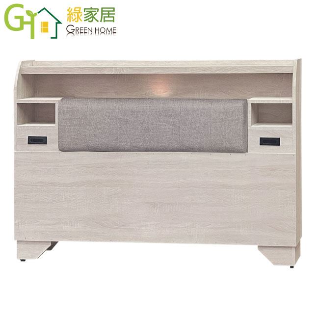 【綠家居】卡希5尺貓抓皮革雙人可收納床頭片(三色可選+LED&插座設置)