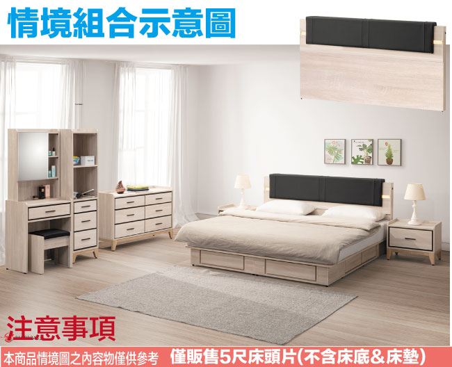 【綠家居】悅卡5尺雙人柔韌皮革夜燈床頭片(二色可選+不含床底+不含床墊)