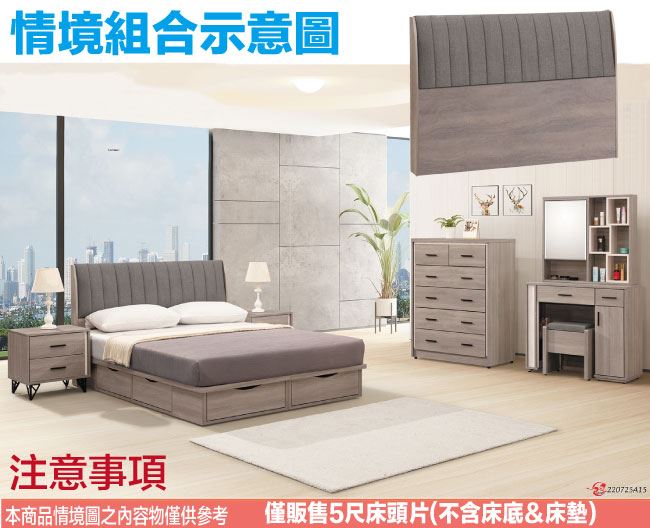 商 品 介 紹 | 【綠家居】迪羅克5尺雙人貓抓皮革床頭片(不含床底+不含床墊) 灰橡木紋色系+現代簡約風格+安心材質製造,整體採用防蛀木心板+防潮耐磨腳座+耐刮貓抓皮革+高彈力泡棉等安心材質製造,產品外層採用防潮耐磨噴漆處理,全由專人配送到家,專業安心服務,替你省下更多時間! 【商品特色】 灰橡木紋色系+現代簡約風格+安心材質製造,使用放心+搭配居家更便利 採用防蛀木心板+防潮耐磨腳座+耐刮貓抓皮革+高彈力泡棉等安心材質製造 產品外層採用防潮耐磨噴漆處理 此商品不需要DIY組立,此商品為組立後之成品 品質保證、專業設計、貼心服務 全由專人配送到家,專業安心服務,替您省下更多時間