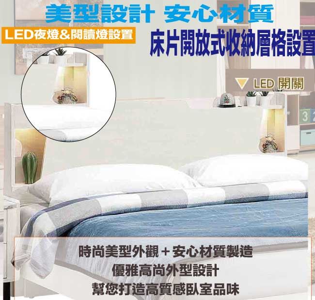 【綠家居】菲可達5尺雙人夜燈床台組合(床頭片+床底+不含床墊)