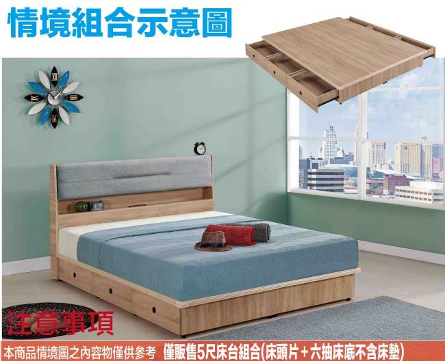 【綠家居】巴斯亞5尺雙人貓抓布六抽床台組合(床頭片+六抽床底+不含床墊)