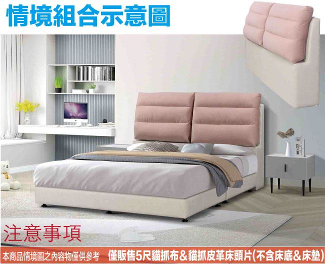 【綠家居】麥思5尺雙人貓抓布&皮革床頭片