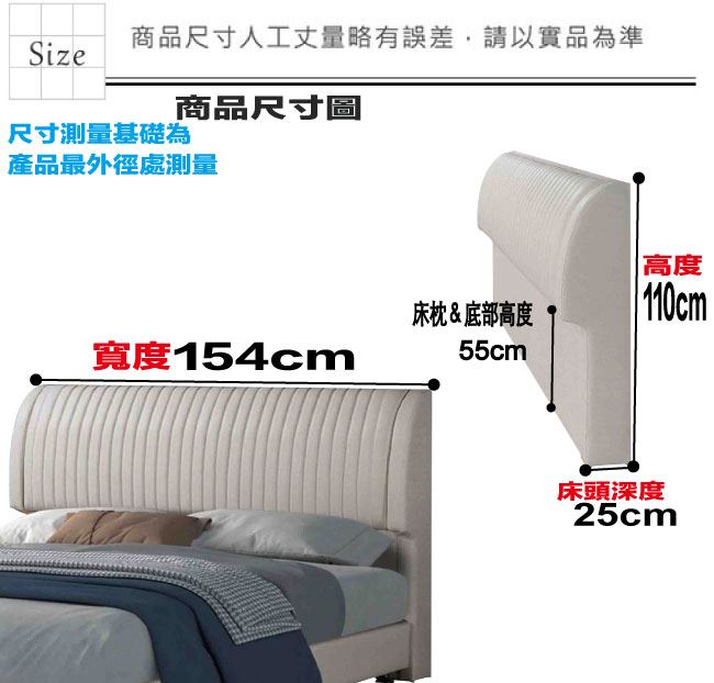 材質 | ◆產品名稱:【綠家居】坦思利5尺雙人貓抓布紋皮革床頭片 床頭片尺寸:(寬)154x(深)25(高)110/公分 ◆材質: 材質:內置實木框架+防潮包覆底座+耐磨貓抓布紋皮革+高回彈泡棉 |