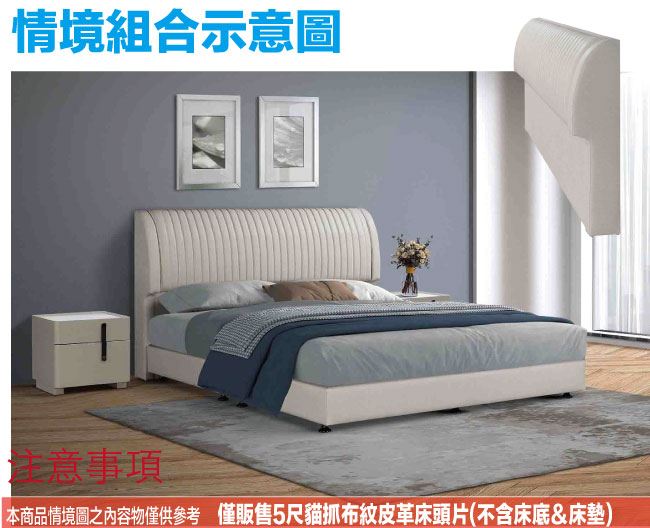 【綠家居】坦思利5尺雙人貓抓布紋皮革床頭片