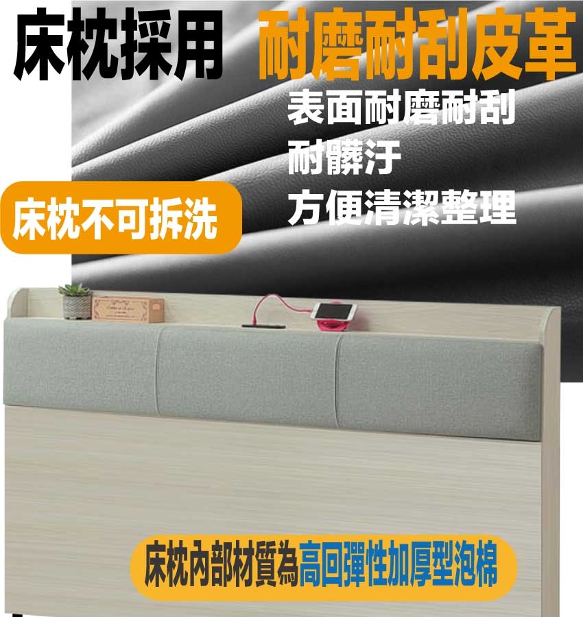 材質:防蛀木心板+防潮耐磨底座+耐磨耐刮皮革+高回彈泡棉