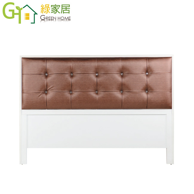 【綠家居】雷斯 時尚白5尺水鑽皮革雙人床頭片