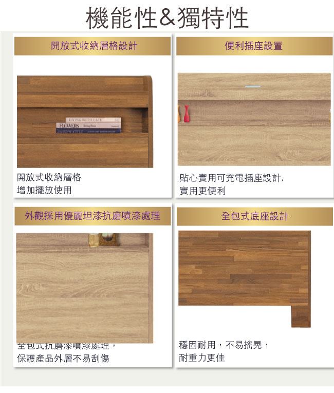 商品介紹 | 【綠家居】斯里蘭 現代6尺雙人加大床頭片(二色可選) 二色可選+現代簡約風格+安心材質製造,整體採用防蛀木心板安心材質製造,外層採用優利坦全包式耐磨噴漆處理搭配便利插座設置+開放收納層格等便利設計,全由專人配送到家,專業安心服務,替你省下更多時間! 【商品特色】 二色可選+現代簡約風格+安心材質製造,使用放心+搭配居家更便利 採用防蛀木心板安心材質製造 便利插座設置+開放收納層格等便利設計 此商品不需要DIY組立,此商品為組立後之成品 品質保證、專業設計、貼心服務 全由專人配送到家,專業安心服務,替您省下更多時間 |