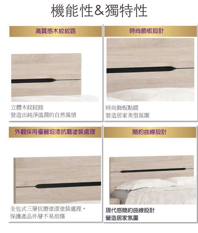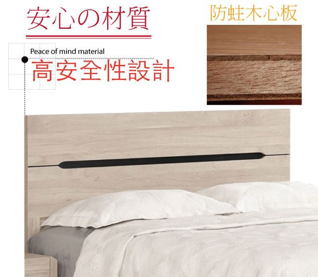 材質 | ◆產品名稱: 【綠家居】查迪 橡木紋6尺雙人加大床頭片(不含床底+不含床墊) 床頭片尺寸:(寬)182x(深)3.5(高)105/公分 ◆材質: 材質:防蛀木心板 噴漆:防潮耐磨噴漆處理