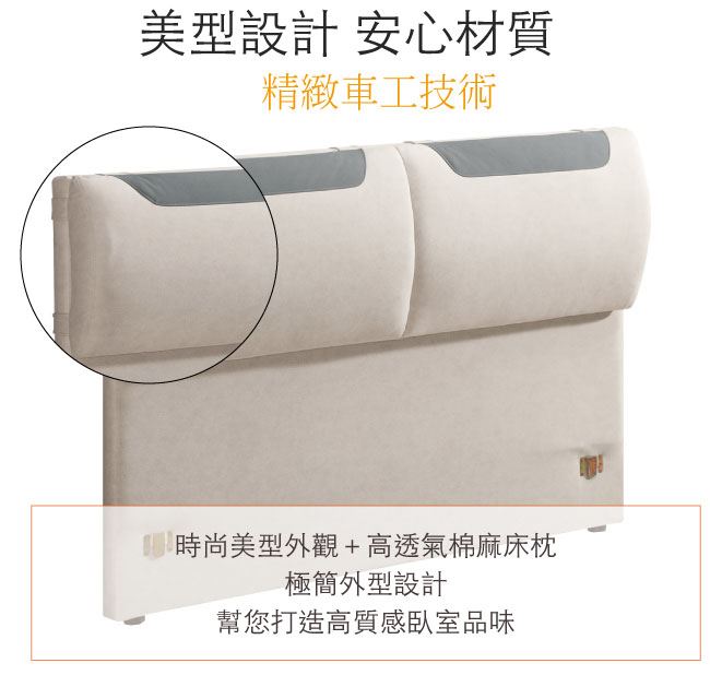 商品介紹 | 【綠家居】查迪 米黃6尺雙人加大棉麻布床頭片 米黃色系+現代簡約風格+安心材質製造,整體採用實木框架+防蛀木心板+透氣棉麻布+高密度泡棉等安心材質製造,全由專人配送到家,專業安心服務,替你省下更多時間! 【商品特色】 米黃色系+現代簡約風格+安心材質製造,使用放心+搭配居家更便利 採用實木框架+防蛀木心板+透氣棉麻布+高密度泡棉等安心材質製造 此商品不需要DIY組立,此商品為組立後之成品 品質保證、專業設計、貼心服務 全由專人配送到家,專業安心服務,替您省下更多時間 |