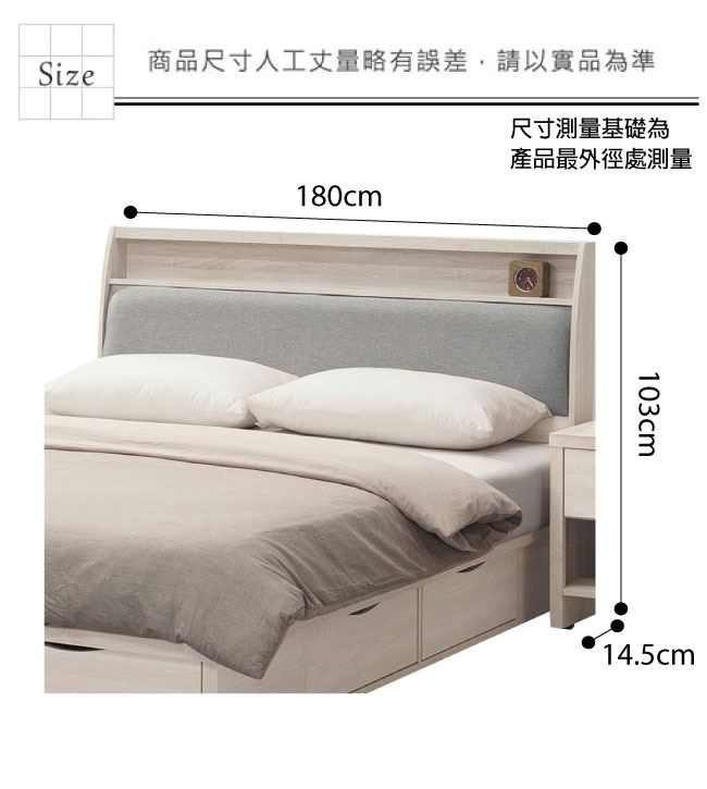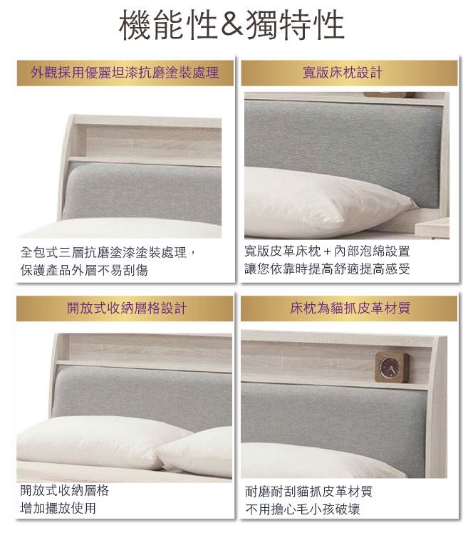 材質 | ◆產品名稱: 【綠家居】提米 現代6尺雙人加大貓抓皮革床頭片(不含床底+不含床墊) 產品尺寸: 木紋雙色 床頭尺寸:(寬)180(深)14.5x(高)103/公分 ◆材質: 材質:防蛀木心板+耐刮貓抓皮革+高密度泡棉 塗漆:優利坦全包式耐磨噴漆處理