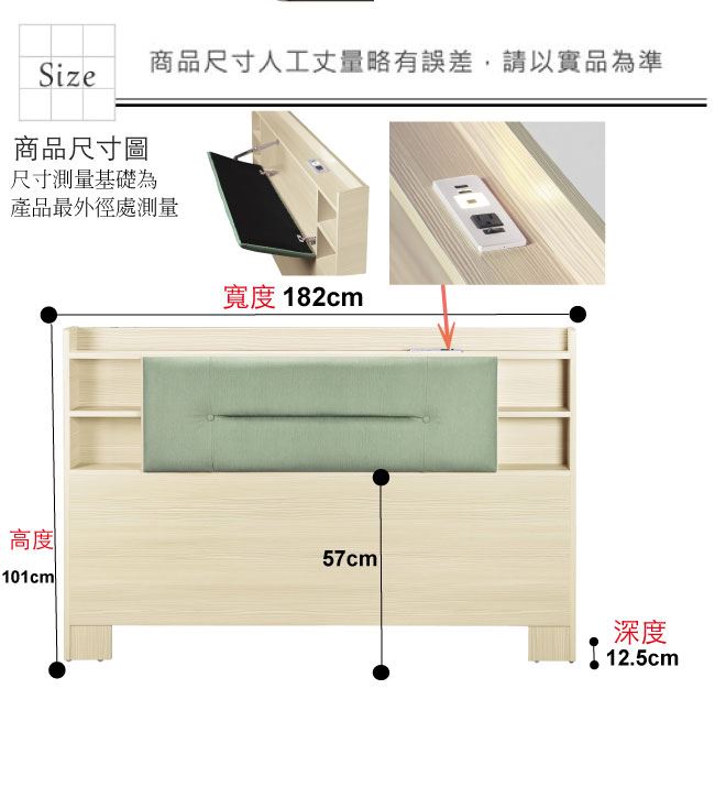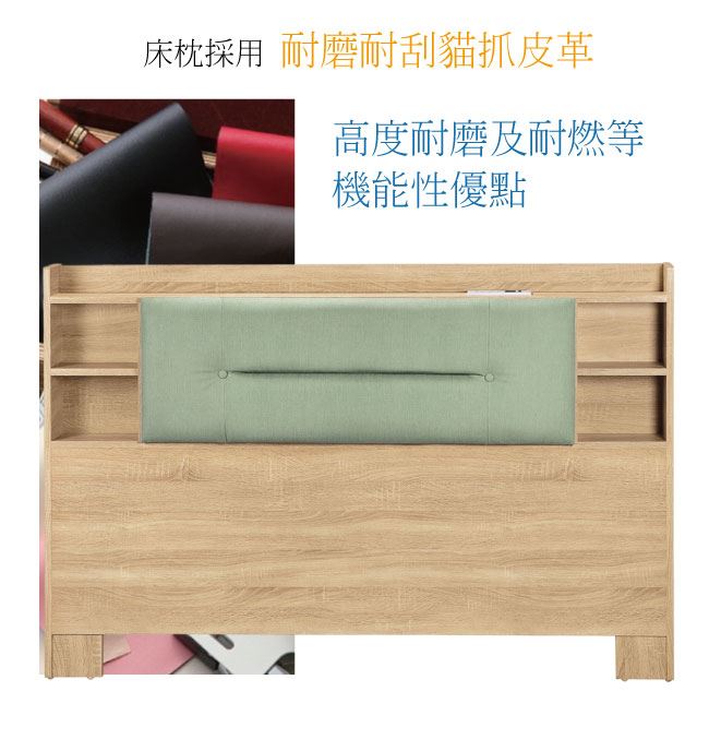 材質 | ◆產品名稱:【綠家居】安羅6尺雙人加大貓抓皮革可收納附插座床頭片(二色可選) 床頭尺寸:(寬)182x(深)12.5(高)101/公分 ◆材質: 材質:防蛀木心板++防刮貓抓皮革+高密度泡棉+防潮耐磨底座 噴漆:防潮耐磨噴漆處理