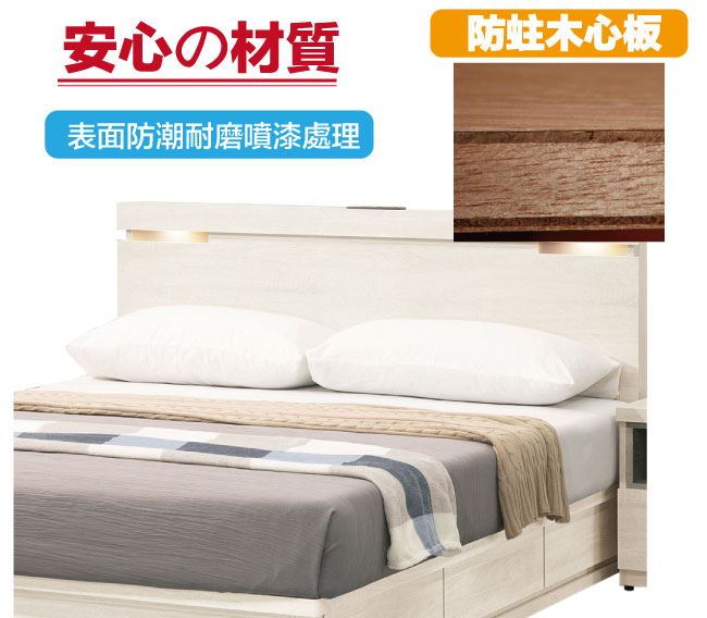 材質 | ◆產品名稱:【綠家居】艾絲莉6尺夜燈雙人加大床頭片(不含床底+不含床墊) 床頭尺寸:(寬)181.8x(深)12(高)91/公分 ◆材質: 材質:防蛀木心板 噴漆:防潮耐磨噴漆處理