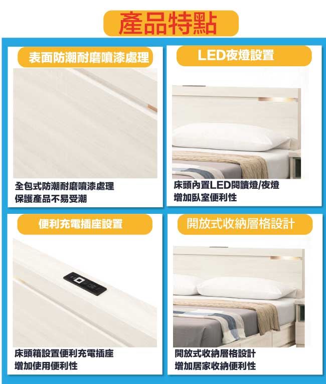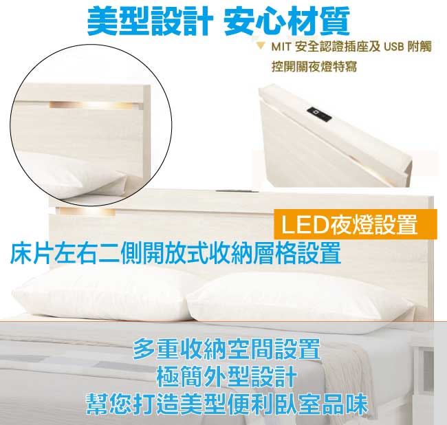 商品 介紹 | 【綠家居】艾絲莉6尺夜燈雙人加大床頭片(不含床底+不含床墊) 淺橡木紋色系+現代簡約風格+安心材質製造,整體採用防蛀木心板安心材質製造,產品外層採用防潮耐磨噴漆處理搭配採用床頭開放收納層格+LED夜燈&便利插座設置等收納空間設計,全由專人配送到家,專業安心服務,替你省下更多時間! 【商品特色】 淺橡木紋色系+現代簡約風格+安心材質製造,使用放心+搭配居家更便利 採用防蛀木心板安心材質製造 產品外層採用防潮耐磨噴漆處理 搭配採用床頭開放收納層格+LED夜燈&便利插座設置等收納空間設計 此商品不需要DIY組立,此商品為組立後之成品 品質保證、專業設計、貼心服務 全由專人配送到家,專業安心服務,替您省下更多時間 |
