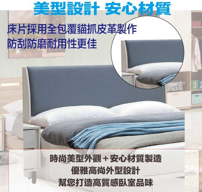 商 品 介 紹 | 【綠家居】亞可瑪貓抓皮革6尺雙人加大床頭片(不含床底+不含床墊) 淺橡木紋色系+現代簡約風格+安心材質製造,整體採用防蛀木心板+防潮耐磨腳座+耐磨貓抓皮革+高密度泡棉等安心材質製造,產品外層採用防潮耐磨噴漆處理,全由專人配送到家,專業安心服務,替你省下更多時間! 【商品特色】 淺橡木紋色系+現代簡約風格+安心材質製造,使用放心+搭配居家更便利 採用防蛀木心板+防潮耐磨腳座+耐磨貓抓皮革+高密度泡棉等安心材質製造 產品外層採用防潮耐磨噴漆處理 此商品不需要DIY組立,此商品為組立後之成品 品質保證、專業設計、貼心服務 全由專人配送到家,專業安心服務,替您省下更多時間