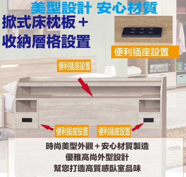 可掀式床枕板+內外開放層格