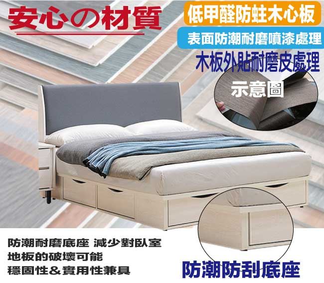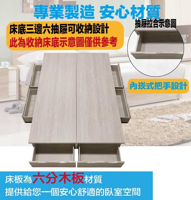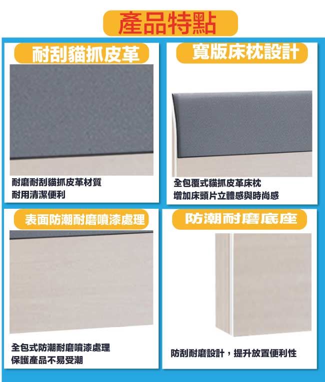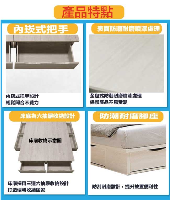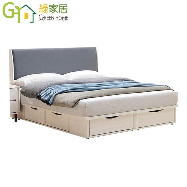 商 品 介 紹 | 【綠家居】萊迪6尺雙人加大貓抓皮革可收納六抽床台組合(床頭片+六抽床底+不含床墊) 淺橡木紋色系+現代簡約風格+安心材質製造,整體採用防蛀木心板+六分木床板+防潮耐磨腳座+耐刮貓抓皮革+高彈力泡棉等安心材質製造,產品外層採用防潮耐磨噴漆處理搭配採用床底座三邊開合六抽屜收納空間設計,全由專人配送到家,專業安心服務,替你省下更多時間! 【商品特色】 淺橡木紋色系+現代簡約風格+安心材質製造,使用放心+搭配居家更便利 採用防蛀木心板+六分木床板+防潮耐磨腳座+耐刮貓抓皮革+高彈力泡棉等安心材質製造 產品外層採用防潮耐磨噴漆處理 搭配採用床底座三邊開合六抽屜收納空間設計 此商品不需要DIY組立,此商品為組立後之成品 品質保證、專業設計、貼心服務 全由專人配送到家,專業安心服務,替您省下更多時間