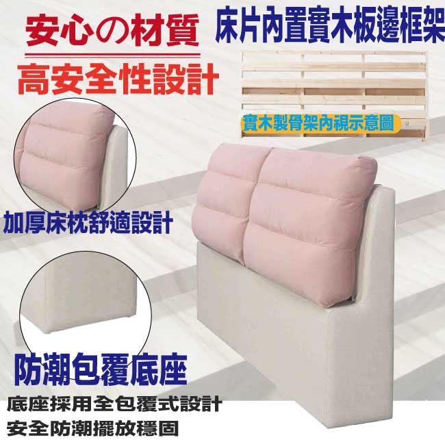 商 品 介 紹 | 【綠家居】麥思6尺雙人加大貓抓布&皮革床頭片 時尚雙色系(玫瑰粉+米色系)+現代簡約風格+安心材質製造,整體採用內置實木框架+防潮包覆底座+耐磨貓抓布紋皮革+輕絨貓抓布料+高回彈泡棉等安心材質製造,全由專人配送到家,專業安心服務,替你省下更多時間! 【商品特色】 時尚雙色系(玫瑰粉+米色系)+現代簡約風格+安心材質製造,使用放心+搭配居家更便利 採用內置實木框架+防潮包覆底座+耐磨貓抓布紋皮革+輕絨貓抓布料+高回彈泡棉等安心材質製造 此商品不需要DIY組立,此商品為組立後之成品 品質保證、專業設計、貼心服務 全由專人配送到家,專業安心服務,替您省下更多時間